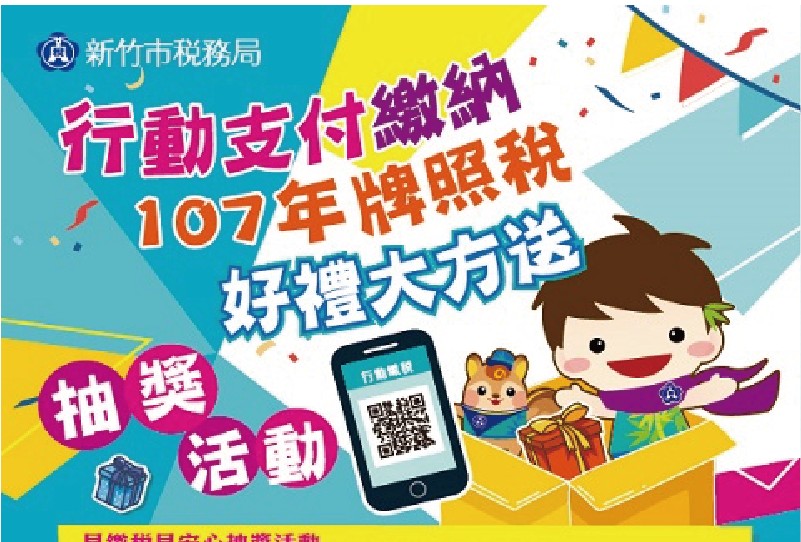 民眾使用行動支付繳納107年新竹市使用牌照稅,多重抽獎好禮如下: