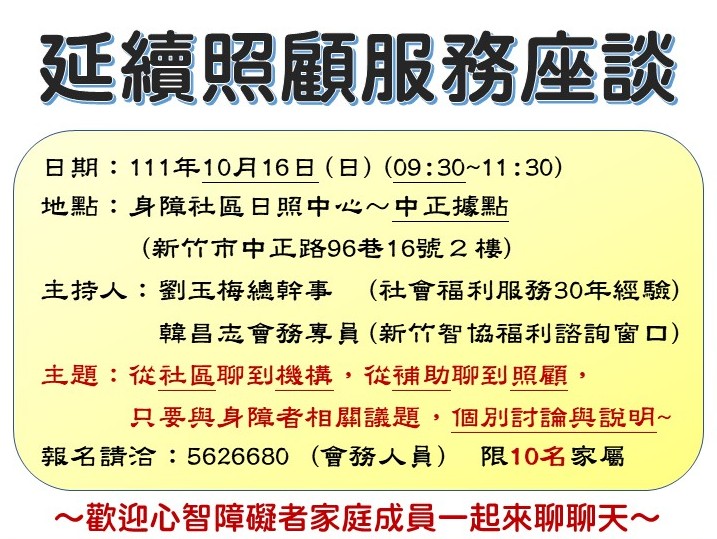 韓昌志會務專員(新竹智協福利諮詢窗口)
