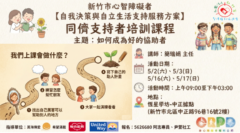新竹市身心障礙者115年家托員、臨托員培訓課程